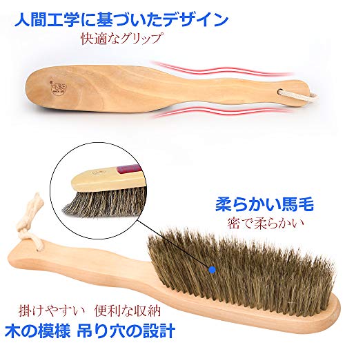 【ブラシ】ブラシはただ汚れを落とすだけでなく、繊維の流れを整えて毛玉やテカりを防ぎ、さらに汚れが無い清潔な状態に保つことでカビや虫食いを防いでいるのです。大きさも手に持った時丁度よく、少しの汚れもブラシをかけると落ちました。サイズ:22.553cm