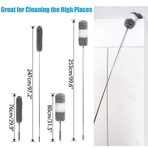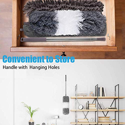 【延長可能なロングポール】延長ポール付きのダスターは、30~100インチまで延長できます。椅子やはしごを使わずに、天井、ランプ、ブラインド、通気口を簡単に掃除できます。労力、安全性、省スペースを節約します。