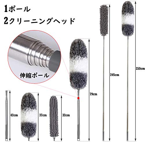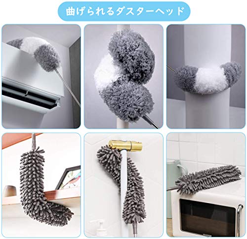 【2in1 超極細繊維&シェ二ール】このホコリ取りキットには、1マイクロファイバーモップヘッド、1シェ二ールモップヘッドと1ステンレスポールが含まれています。マイクロファイバーヘッドは、吸着性が強くて、軽く拭いて静電気を吸着できます。髪、糸屑、紙くず、花粉、ハウスダストやホコリ等が一瞬にキャッチして、取り除けます。シェ二ールヘッドは、柔らかくて、任意の表面に擦ったり、傷ついたりすることがありません。