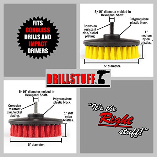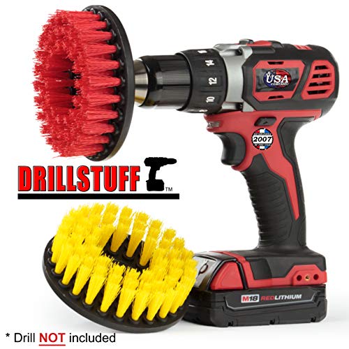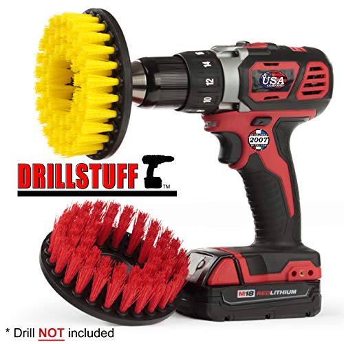 Drillstuff スクラブブラシ2個入り 内張 車のカーペットに 5インチ 丸型 パワードリル用アタッチメント付き