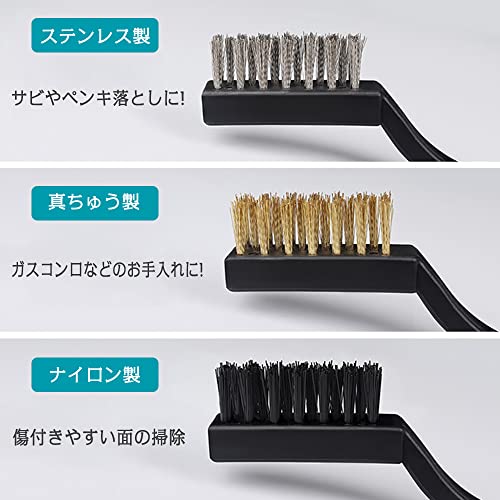 【機能】ステンレス:水廻りのサビ落し、機械類の掃除などに。真鍮:柔らかい傷つきやすい機械部品などの研磨や洗?にも。ナイロン:キズつきやすい材質・水廻り・狭い所の掃除など