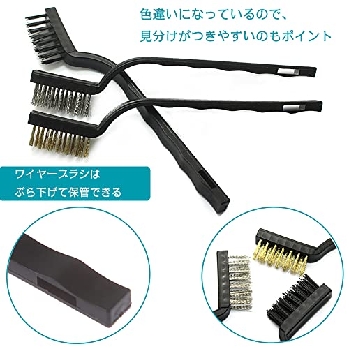 ワイヤーブラシ (ステンレス/真鍮/ナイロン) ワイヤーブラシセット 3本セット 穴付き 掃除用ブラシ 汚れ落と
