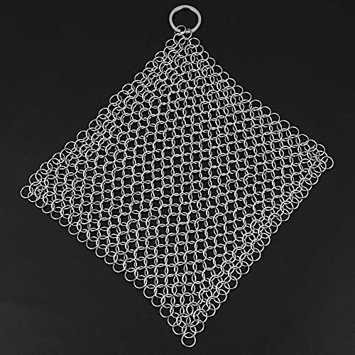 Alliteqwe 鋳鉄クリーナー -プレミアム316ステンレススチールチェーンメールスクラバー、8x6インチ