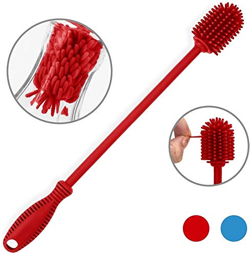 ddLUCK 長柄シリコン製瓶ブラシ ボトルブラシ シリコン ブラシ BPAなし30.5cm水筒ブラシ ハイドロフラスコ スポ
