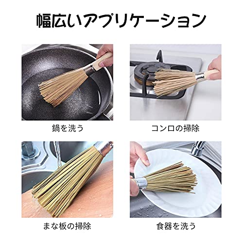 RICISUNG 竹ささら 抗菌鉄フライパン掃除シンクキッチンブラシ台所用品を吊るすことができま 長さは約25 cm、取
