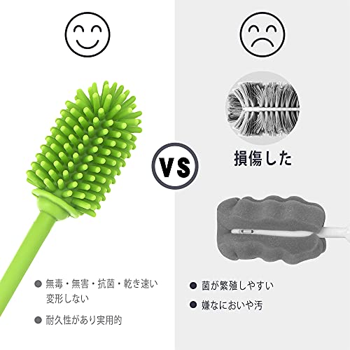 【高品質素材】すべてのブラシはFDA認定のシリコン素材と100%BPAなし、食品級のシリコンボトルブラシ、汚染がなく、絶対な環境保護が施されています。