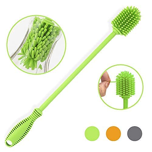 ddLUCK 長柄シリコン製瓶ブラシ ボトルブラシ シリコン ブラシ BPAなし30.5cm水筒ブラシ ハイドロフラスコ スポ