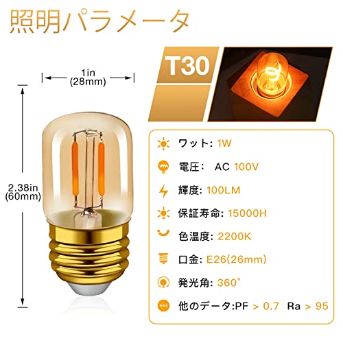 | 商品名 | LEDシャンデリア電球 金グラス 茶色 フィラメント T30 冷蔵庫照明 ちらつき少ない 口金直径26mm 1W(10W形相当) 100lm |