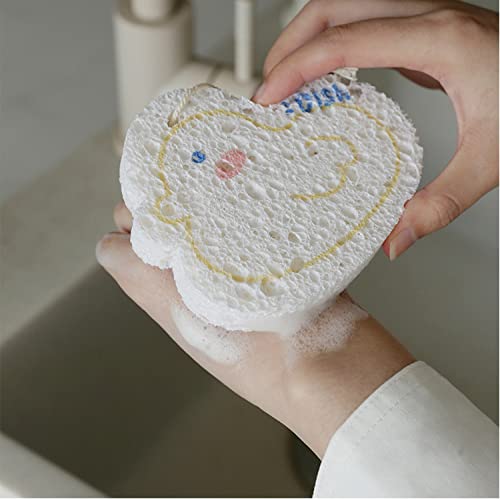 Longwu キッチンスポンジ 吸水スポンジ 4個 圧縮 セルロース 天然素材 速乾 長持ち 泡立ち たっぷり 台所 食器用