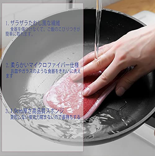 【簡単と安全】:複数回使用可能です。豊かな泡は柔らかく、無毒で無臭で、豊かな泡で手や表面を傷つかずに守ります。食器に傷付かないことがたわし風繊維の魅力です。キッチンスポンジ本体は柔らかくて摩擦力が強いので、優しく汚れを落としてくれます。