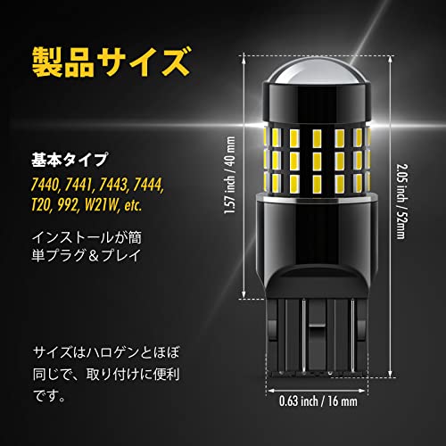 【フィット】標準T20デュアル輝度タイプランプ,無極性で取付簡単。適合:T20 7440A 7440NA 7440 7440SV 7443NA 7441 7443 7443R 7444 992 WY21W W21/5W W21Wなどインストール、プラグアンドプレイが簡