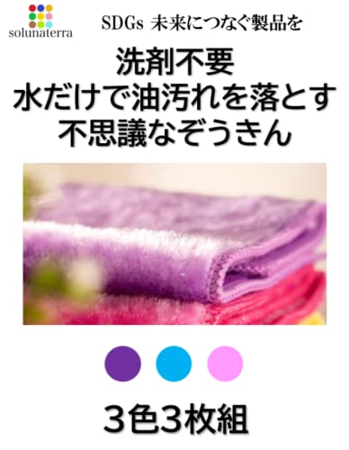 solunaterra ふきとりクロス 雑巾 水だけで落ちる ボアクロス マジッククロス 3枚組 30×26cm