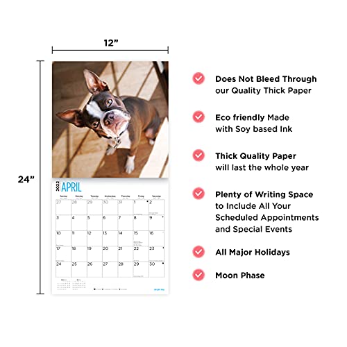 2022 Boston Terrier Puppies Wall Calendar by Bright Day, 12 x 12 Inch, Cute Dog