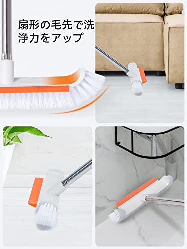 デッキブラシ 風呂掃除 ブラシ 2WAY 水切りワイパー ベランダ掃除用ブラシ 3段長さ調節可 タイルブラシ 屋外