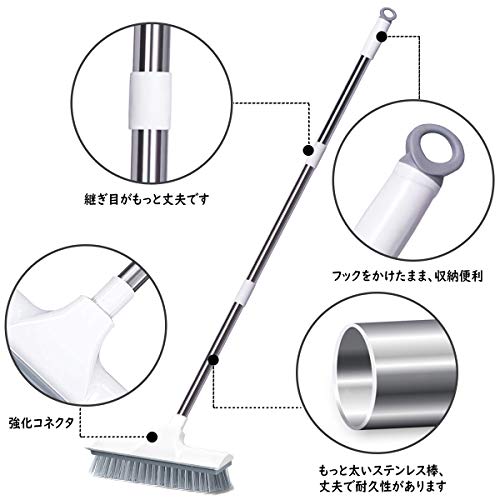 【耐久性】掃除用ブラシは、高品質のステンレス製ポールとPP素材のブラシヘッドで構成されています。ブラシヘッドの硬い毛先は、粗い床の汚れを効果的に除去し、毛先はその形状を保持して、長時間の洗浄効果を持続できます。浴室の床の細かい溝にも入り込み、汚れを掻き出します。