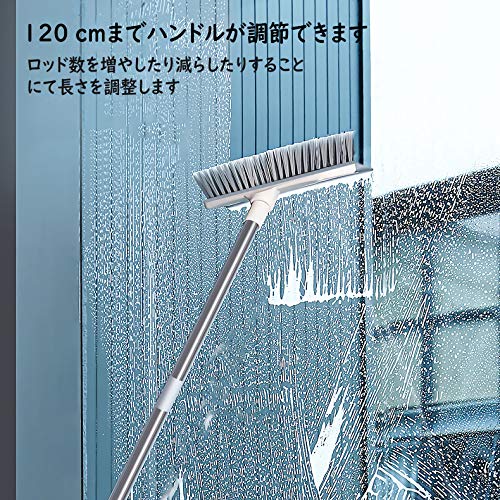 デッキブラシ ベランダ掃除用ブラシ ウォータースクレーパー 2 in 1 水切りワイパー 3段長さ調節可能 掃除用ブ