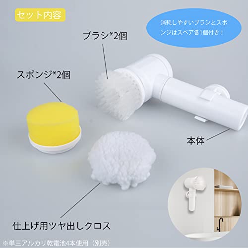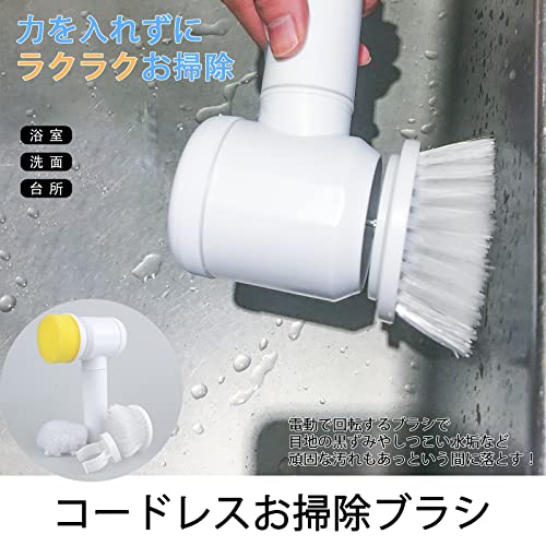 SOARING 電動清掃ブラシ 電池式(単三電池4本)無線 キッチン 浴室 バスミラー 手持ち式 掃除ブラシ(ホワイト)