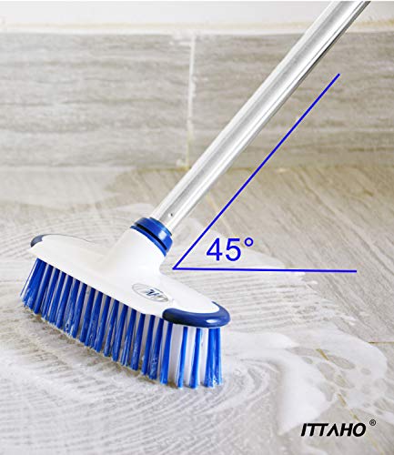 ITTAHO マルチユース フロア スクラブ ブラシ ロング ハンドル付き タイル、床、デッキ、パティオ、大理石、ガ