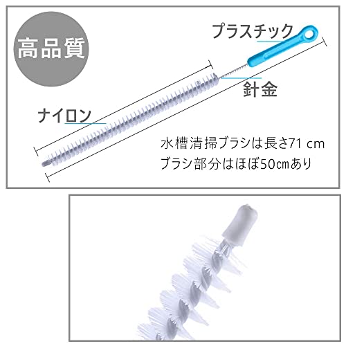 【細長いブラシ】水槽清掃ブラシは長さ71 cm、ブラシ部分はほぼ50cmあり、長くて細い構造で、狭い所でも心配なく清潔できます。