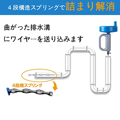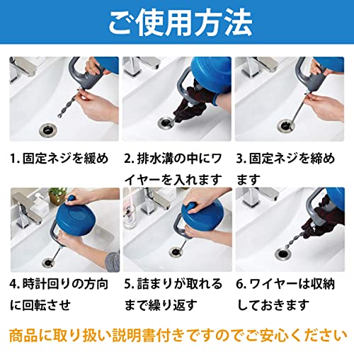 [高いデザイン性]使用の後、ワイヤーは本体に収納ができます。5メートルでも10メートルのワイヤーでも可能です。回転ハンドルを使用すれば、Sトラップ・Pトラップどちらの曲がった排水溝にも使用ができるので、トイレや洗面所、台所のシンク、床排水用や他のパイプにもお使いいただけます。
