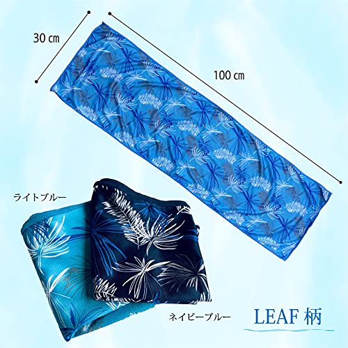 ノア ひんやりタオル 冷感 クールタオル リーフ柄 (ライトブルー) 30×100cm