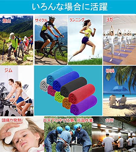 【多様の使い方 涼しい】(長さ)100cm×(幅)30cm、手ごろなサイズで首に掛けたり、巻いたり、頭に巻いても手に結んでもヒンヤリと快適です。冷たいタオルは肌にひんやりとし