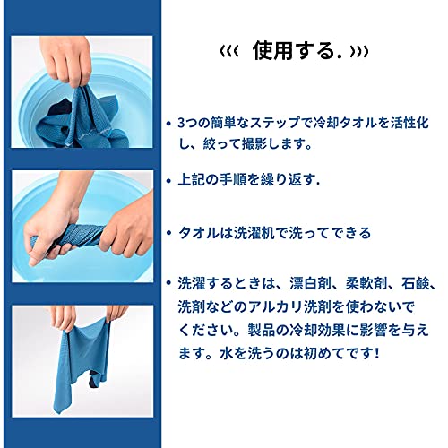 【多用途】夏の強い日差しからお肌を守ってくれるので、頭や肩から掛けて身体を冷やしつつ、紫外線からお肌をよく守り、夏の猛暑対策、熱中症対策に欠かせないアイテムです。色んな場合に適用:室内運動、建築仕事、ヨガ、登山、運動会。