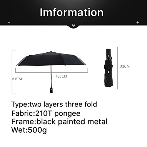 生地:190トン名物 ハンドル:ゴムコーティングプラスチックハンドル フレーム:ブラックメタルフレームとブラックファイバーグラスエンドリブ シャフト:バレルメタルシャフト ヒント:黒色ニッケルコーティング金属チップ [防風性と防水性]は、乾燥したままで、屋外の要素から保護されています。 [自動開閉]あなたは濡れないように車やビルドをもっと速くすることができます。また、唯一のボタンを押すだけで傘を操作する必要があるので、別の手で他のことをすることもできます [軽量]旅行に最適で、バックパック、学校用バッグ、ハンドバッグ、ブリーフケース、カーストレージに簡単に入れることができます [二層の生地]一層の生地の傘よりも強く、内部と外部の色があなたのた