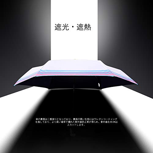 【晴雨兼用】 傘面は耐腐食や耐摩耗、シワ防止、防カビなど多機能の高密度NC布を採用、撥水性が優れ、傘から水滴がよく流れ落ちるので、軽く揺さぶるだけで雨水が落ちます。 遮光率100%、UVカット率は100%、UPF50+という高機能タイプの晴雨兼用傘です。季節問わず使うことができ、なアイテム日差しや有害な紫外線からお肌を守り、日焼けを防げます。