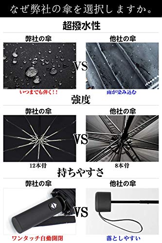?【高強度12本骨折りたたみ傘】頑丈な12本骨の設計で、豪雨、強風にも対応できます。強風で裏返ってもちゃんと元に戻ります。アルミニウム合金製中棒とガラス繊維&スチール製の傘骨を採用するので、錆びなくて、普通の傘より風に強い設計で、安易に折れたり曲がったりする心配ありません。