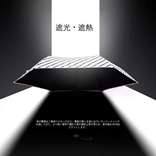 【晴雨兼用】 傘面は耐腐食や耐摩耗、シワ防止、防カビなど多機能の高密度NC布を採用、撥水性が優れ、傘から水滴がよく流れ落ちるので、軽く揺さぶるだけで雨水が落ちます。 遮光率100%、UVカット率は100%、UPF50+という高機能タイプの晴雨兼用傘です。季節問わず使うことができ、なアイテム日差しや有害な紫外線からお肌を守り、日焼けを防げます。