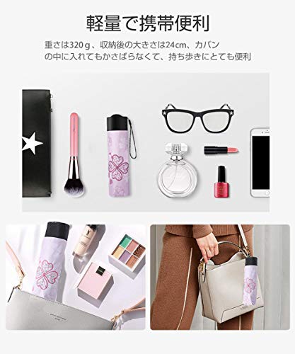 320g りたたみ傘 晴雨兼用 クローバー遮熱 高耐久度 日傘 耐強風 超撥水 紫外線遮蔽率100% 高強度グラスファイ