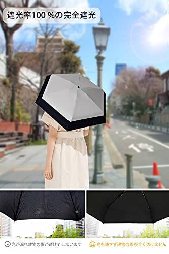 【UVカット&100%完全遮光】五層仕組みで内側に黒い遮熱コーディング加工で、UVカット率は99.9%! 遮光率100%!遮熱効果がある日傘折りたたみ傘です。内側に黒い遮熱コーディングの日傘で内側に当たる反射光を吸収し、まぶしくなく、強い日差しの中でも目が疲れません。炎天下でも安心に出かけることができます。