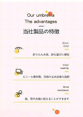 【撥水性・雨傘】晴雨兼用できる自動開閉折り畳み傘です。190T高密度で防水性のある傘布を使用しているため、軽く揺さぶるだけで雨水が落ちるほどの高撥水性を備えています。日傘としても雨傘としてもご使用いただけます。