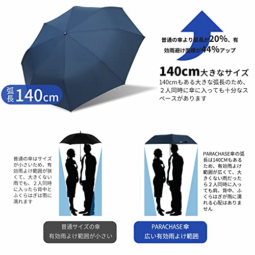 折りたたみ傘 大きい 自動開閉 140CM 高い撥水性布 メンズ 錆びつかない 木製手元 ワンタッチ ガラスファイバ
