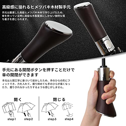 【厳選した高級ヒメツバキ木材ならではの持ち心地】撥水性がどんなによくても、開閉がどんなに便利でも、持ち心地が良くなければ、使いやすさが一段と減ってしまいます。本折りたたみ傘の手元は人間
