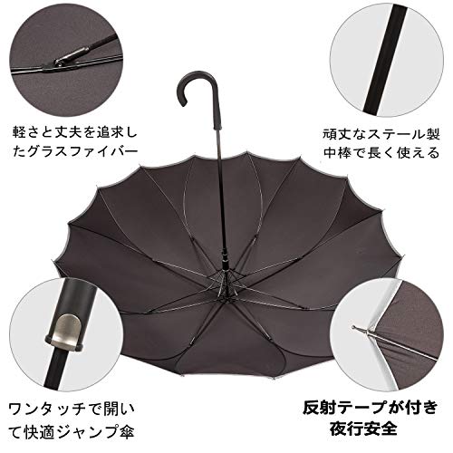 | 商品名 | 瑾秀 長傘 メンズ 大きい ワンタッチ 16本骨 傘 XL 耐風 撥水 ワンタッチ 雨傘 紳士傘 車用 長傘 自動開け ステ |