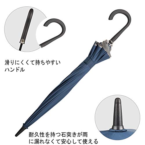 瑾秀 傘 ロングアンブレラ 防風 防雨 メンズ レディース ワンボタン自動開閉レバー 丈夫 軽量 PTFE処理 高強度