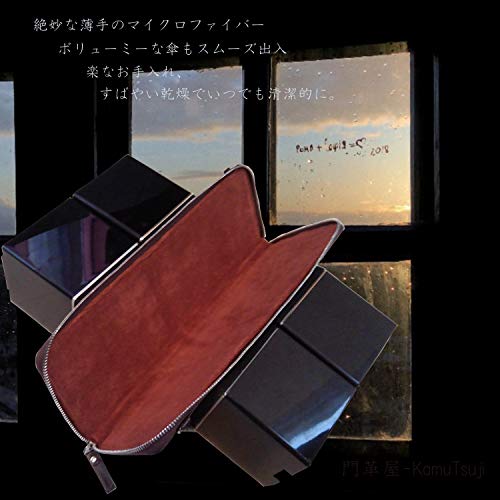 34cm以内の折り畳み傘でのご使用を推奨。 Size/weight /メイン素材 360mm 120mm マチ20mm / 240g / 天然 牛革 マイクロファイバー