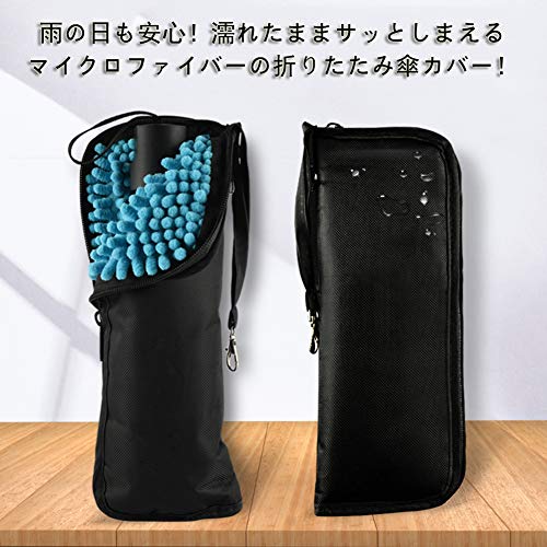 Sitengle 吸水傘カバー + 傘掛け セット 折りたたみ傘用ケース 両面吸水 防水布 持ち手付き 大きいサイズ (32cm2個