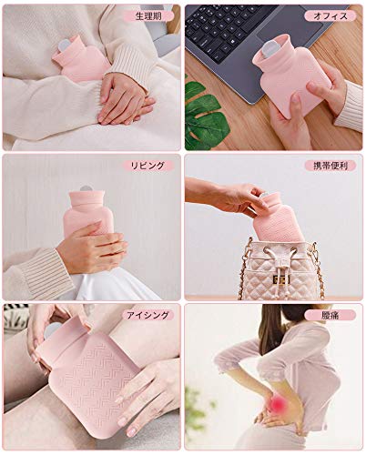 BAOYOUNI 湯たんぽ ゆたんぽ シリコン製 ニットカバー付き 携帯便利 ミニサイズ 冷え対策 保温 グッズ 冷熱両用