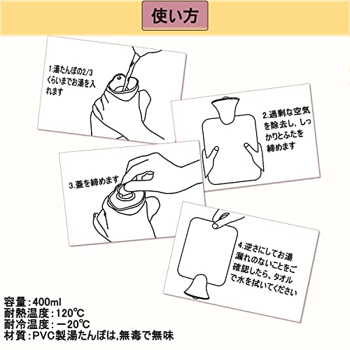 【使いやすい】可愛の保護カバー付き。お肌が直接湯たんぽに触れてやけどをするのを防止します。お湯を注ぐ前にお湯を少し冷ます。魔法瓶の首をつかむ。ゆっくりと水を2/3まで入れます。残りの空気をゆっくり押して、ネジカバーを締めます
