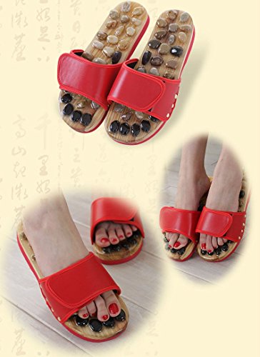 足つぼ マッサージ スリッパ 健康 サンダル レザー天然石 (M 22.5~23.5, レッド)