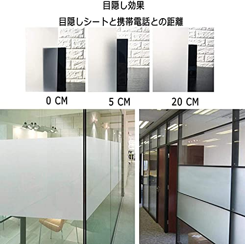【目隠し、プライバシー保護】⇒ 外からの視線を遮りながら、充分に光を室内に取り込めます。カーテンを閉めているときの閉塞感や窮屈感のある暗い部屋から解放されます。透明窓ガラスをくもりガラスにできるお手軽シートで、目隠し効果が高いです。