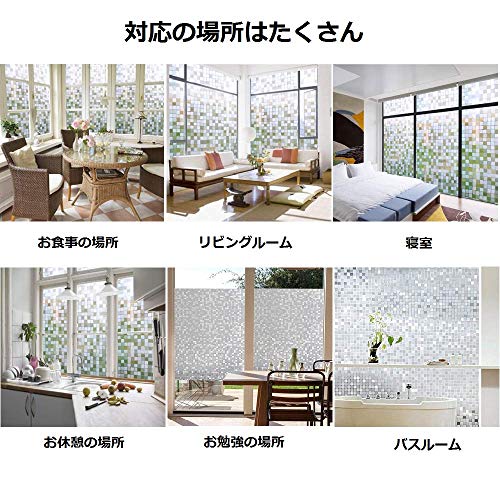 窓 めかくしシート 90×200CM(二枚セット)半透明のモザイク柄 断熱 遮熱 UVカット 窓用 フィルム 水だけで貼る