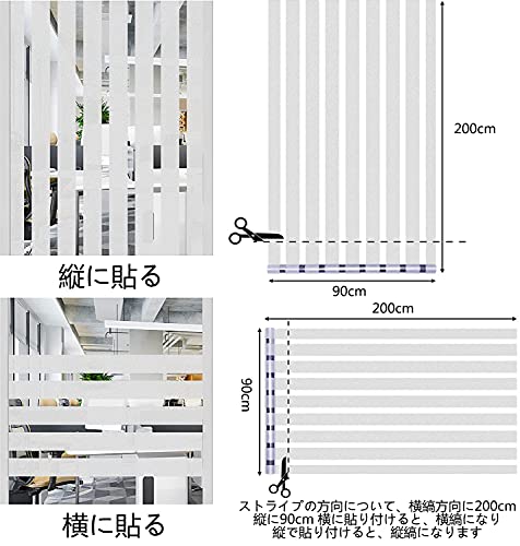 ※ストライプの方向について、横(横縞)方向に200cm、縦に90cm 横に貼り付けると、横縞になり、縦で貼り付けると、縦縞になります。