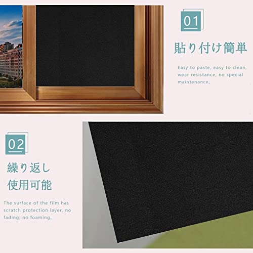【高遮光、不透明、目隠し効果】: 可視光線透過率0%、不透明、非常に優れた遮光フィルムです。黒色すりガラス調。優れた遮光性をお求めの方、自然光・太陽光で目がまぶしいと感じる方におすすめ。大切なプライバシーをきちんと守ってくれます。