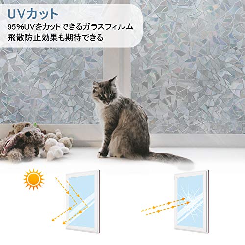 目隠し効果・95%UVカット:目隠し効果に加えて、貼るだけで外からの視線を遮る。95%UVカット:95%窓から侵入してくる紫外線をカットし、大切な家族のデリケートなお肌を守る。