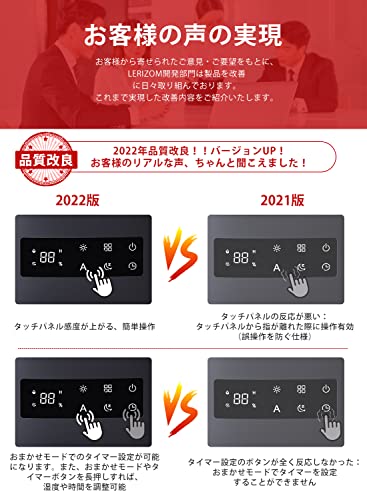 【お客の声ちゃんと届きました】お客様から寄せられたリアルなご意見・ご要望をもとに当社は製品改善に日々取り組んでいます。これまで改良した内容をご紹介いたします。(1)タッチパネル感度アップ。(2)おまかせモードにはタイマー機能を設定するようになりました。(3)長押し調節:タイマーやおまかせモードには長押しで湿度や時間を調節できます。