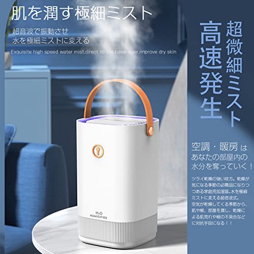 【極細ミスト】室内空気中に水ミストを噴射して空中の埃に湿気が付いていき。空気清浄、ツライ乾燥肌を潤す。乾燥が気になる季節の必需品。加湿器は熱を使わず、肌や喉、部屋を潤す、乾燥による肌荒れや喉の不具合などに対策になります。